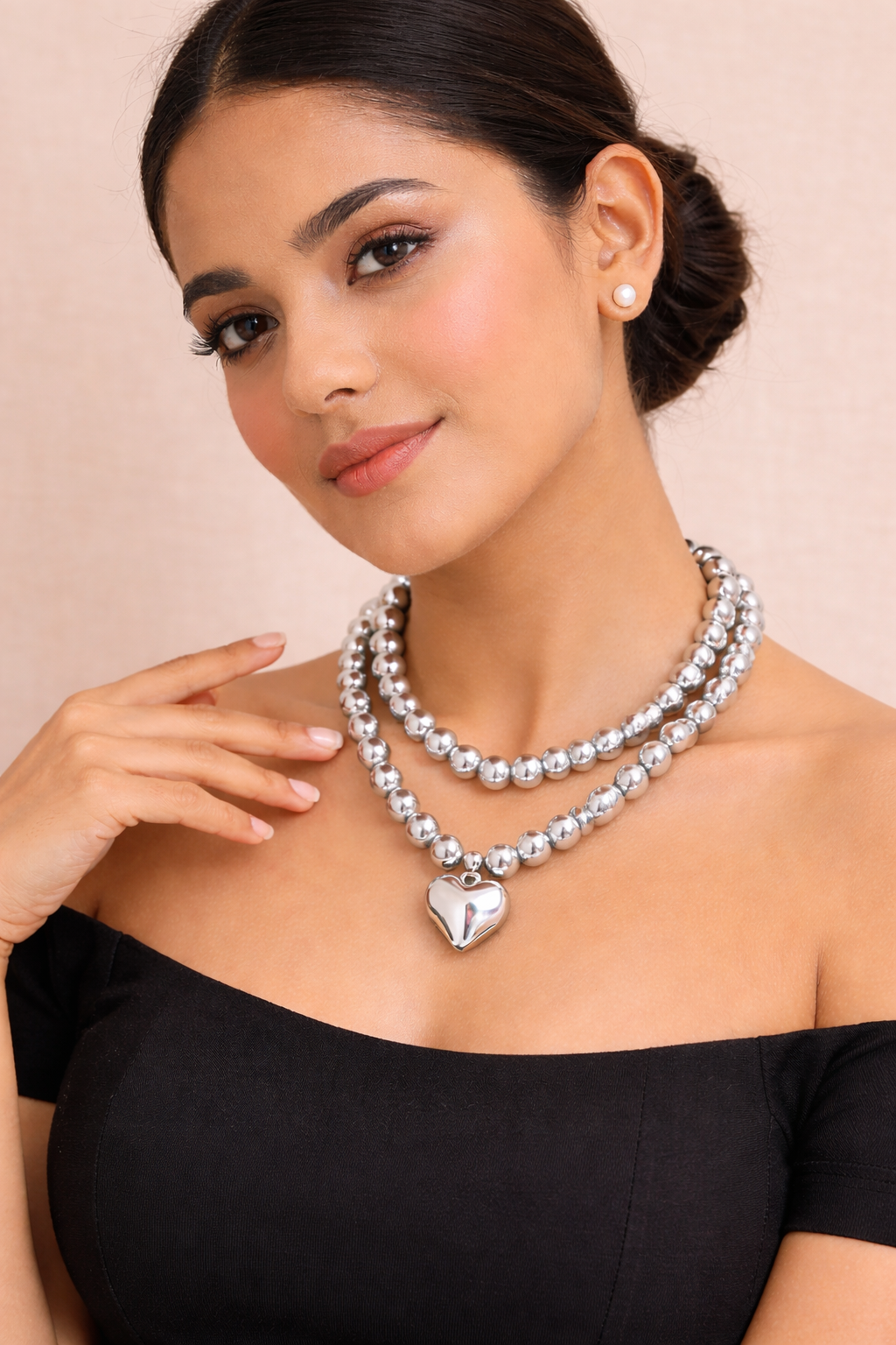 Crafted from premium stainless steel, this necklace features large metallic beads strung together with a stunning heart-shaped pendant that sits beautifully at the neckline. Its high-shine, anti-tarnish finish ensures it stays flawless for years, while the edgy yet elegant design makes it perfect for casual wear, parties, or street-style outfits.