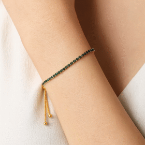 The Scarlet Zircon Bracelet is a statement of timeless beauty and modern elegance. Crafted with precision, this bracelet showcases sparkling pink zircon stones beautifully set on a gold-toned adjustable chain. The sliding clasp ensures a comfortable fit for all wrist sizes. Whether you’re dressing up for a festive event, a romantic dinner, or adding a chic touch to your everyday look, this bracelet complements every style effortlessly. Its anti-tarnish finish ensures long-lasting shine, making it a must-have piece for your jewelry collection.